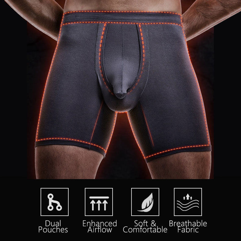 Advanced dual-pouch design delivers optimal separation, reduced friction, and improved ventilation — premium care designed for men.